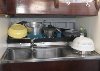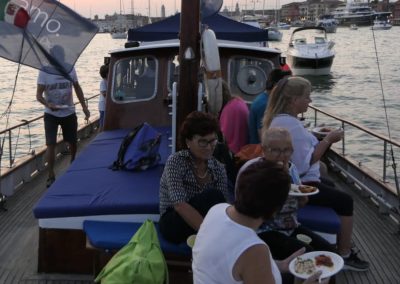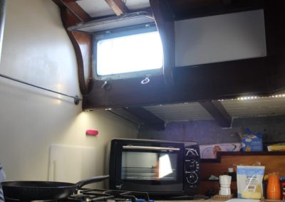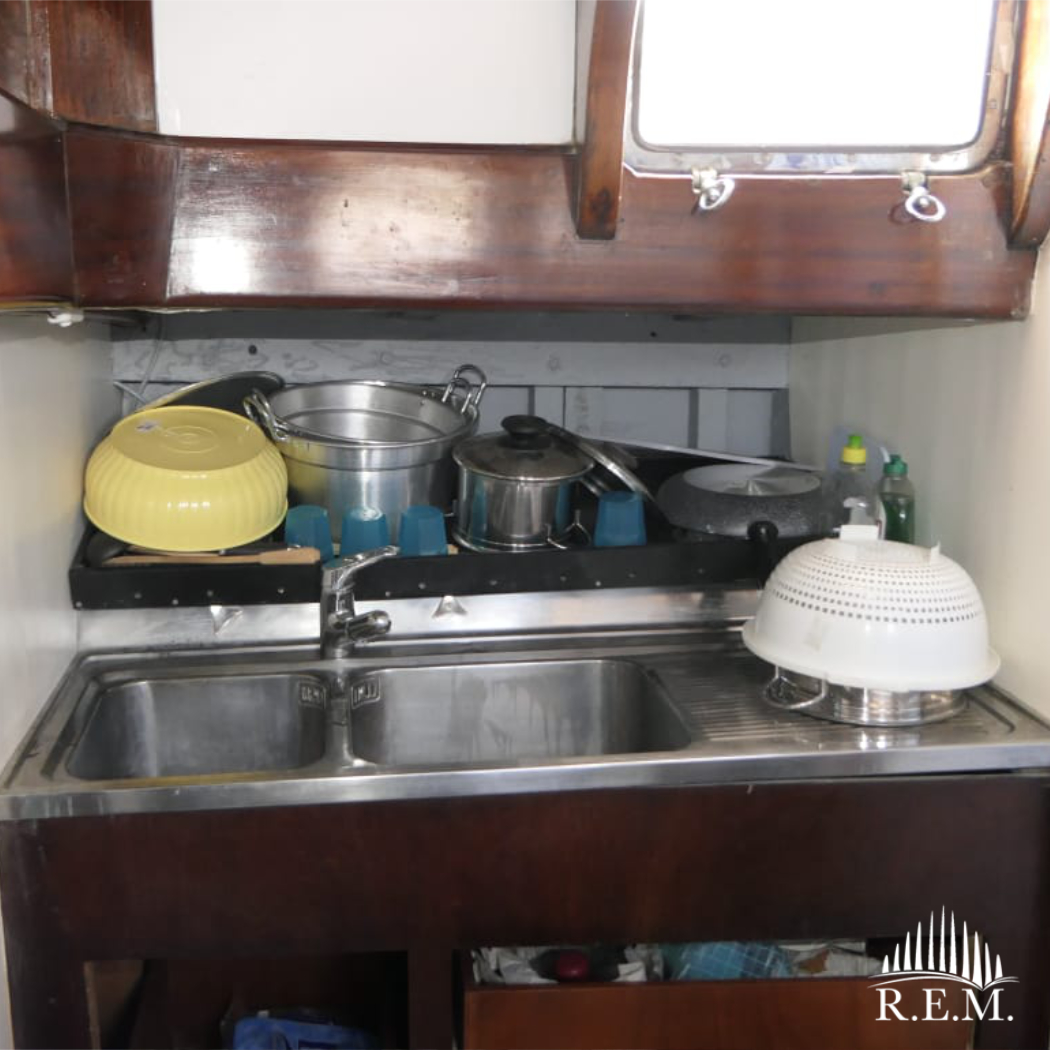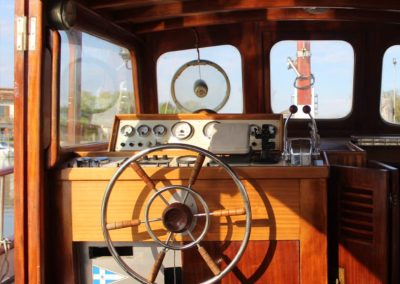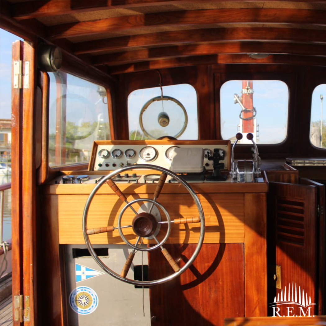 La barca è inoltre munita esternamente di un’apposita scaffalatura per accogliere la libreria.