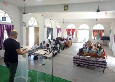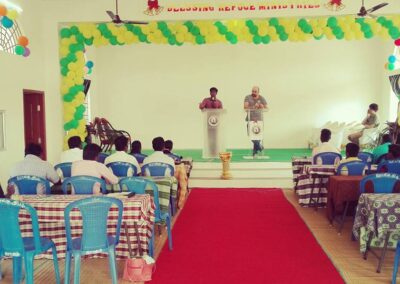 L’edificazione di questa nuova struttura, grazie ad una raccolta fondi che ha visto partecipe la chiesa del nostro Signore Gesù in Italia ed all’estero, ha permesso la realizzazione di un centro polifunzionale, usato sia come sala di culto e centro di accoglienza orfani, sia come centro di formazione missionaria. Ogni anno, infatti, una squadra della Missione R.E.M si reca lì per svolgere dei seminari di formazione missionaria teorica e pratica per tutti quei fratelli che vogliono rispondere alla chiamata di portare l’Evangelo in tutti i villaggi dell’entroterra non ancora raggiunti. Sempre insieme a loro durante quei giorni svolgiamo un’intensa campagna evangelistica.